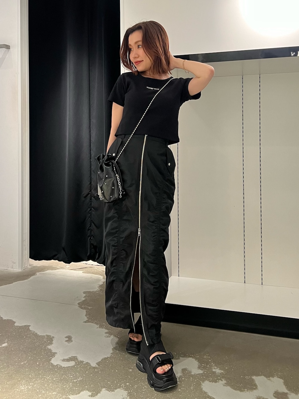 【tops】MURUAロゴがポイントのクロップドTシャツ♡程よく厚みがある素材で透ける心配なし!カラバリも豊富です◎ 【skirt】カーゴライクなデザインがトレンド感のあるシャーリングスカート!ZIPはお好みで深さを調節可能です。148cmだとSサイズでくるぶし丈です。 【shoes】トレンドのエアソールがサンダルに♡軽量で足首がフィットするので歩きやすいです!ストラップでサイズの調整も可能です!