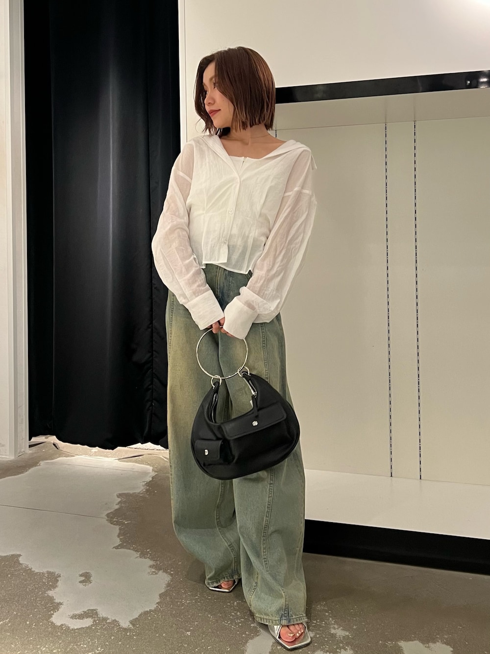 【shirt】春〜秋までロングシーズン着れるシアー素材のマルチウェイシャツ!袖を腰で巻くとキャミソールになり雰囲気を変えられます♡ 【denim】トレンドのコクーンシルエットでベーシックなコーデにもこなれ感が出ます。低身長さんはゆるっと着るのも可愛いです♡ 【shoes】グリッター感が可愛いオシャレミュール!甲に当たる部分はぷっくりした柔らかい素材で痛くなりにくいです◎普段22.5着用ですが23.5で丁度いいサイズ感です!