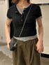 SERINA(Now me.)のTシャツ/カットソー「ヘンリーネックレイヤードトップス」を使ったコーディネート