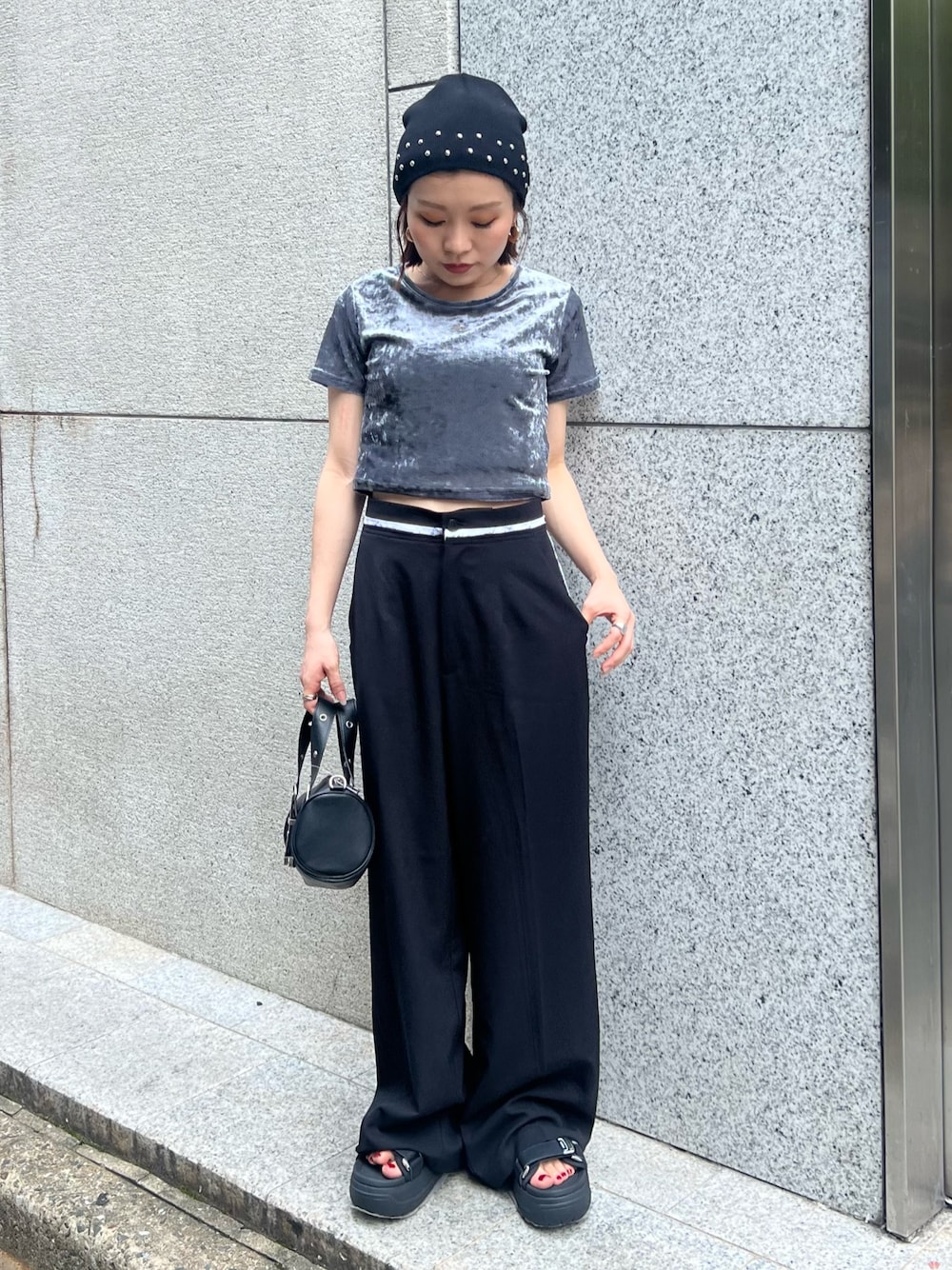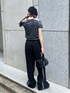 【tops】シアーのベロア素材が新鮮なクロップドTシャツ!光沢感がコーデのアクセントに◎ 【pants】 落ち感のあるさらっとした素材で美脚見えが叶うストレートパンツ!ラインデザインでカジュアルにも◎148cmだとヒール着用でぴったりの丈感です。 【shoes】SHAKAスペシャルコラボ♡厚底でスタイルアップ効果もありながら軽量で履き心地も抜群!普段22.5cm着用で23cmがピッタリです!