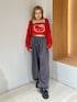 CALNAMUR×Hello Kitty🎀 【tops】キティのフェイス柄が存在感抜群♡単品でも使用できコーデのワンポイントに◎ふわふわのシャギー素材で肌触りも良いです! 【pants】バックポケットのオリジナルロゴがポイント◎裾にゴムがあり足首で止まるので低身長さんにもおすすめ♡