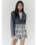【jacket】SETUP着用可◎チュールが新鮮なジャケットは前を閉めるとワンピース風にも♡ 【tops】前後2wayで着れるラメニット♡1枚でもインナーでも華やか見えします! 【denim】バックデザインが可愛い美シルエットのローライズデニム👖148cmだと厚底シューズがおすすめです!