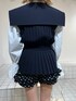 【jacket】インナー次第でオールシーズン使えるジレは後ろのプリーツとセーラーカラーがPoint◎ウエストマークもできるのでコーデにメリハリ付けやすいです! 【tops】1枚でも着映えするフリルブラウス🌸袖のフレアをニットやアウターからチラ見せするレイヤードがおすすめです♡ 【pants】トレンドのドット柄パンツはフリルとチュールがフェミニンコーデにぴったり◎取り入れるだけでオシャレ見えします♡