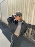 【outer】ヴィンテージっぽいムラ感が可愛いレザージャケット♡ショート丈で低身長さんもスタイルUPできるのでおすすめ!! 【tops】コンパクトなリブニットでインナー使いにも◎着回ししやすいです♩ 【skirt】オトナっぽコーデにおすすめのデニムスカート!スタイリング次第でフェミニンにもカジュアルにも着れます◎ 【CAP】NEW ERAコラボキャップ!!オリジナルロゴがPointです◎