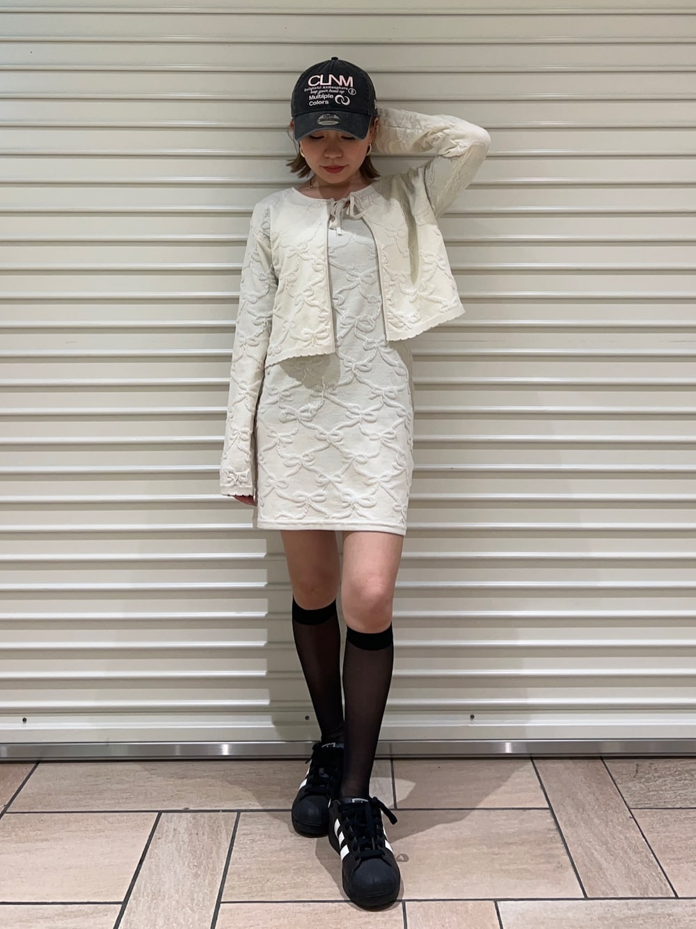 【one-piece】立体的なリボンが可愛いキャミワンピ🎀薄手の生地感と程よいフィット感で夏まで着回しできます! 【tops】ワンピと同素材のカーディガン♡セットで着るのはもちろん、インナーを変えても着回しできます◎ 【CAP】NEW ERAコラボキャップ!!オリジナルロゴがPointです♡
