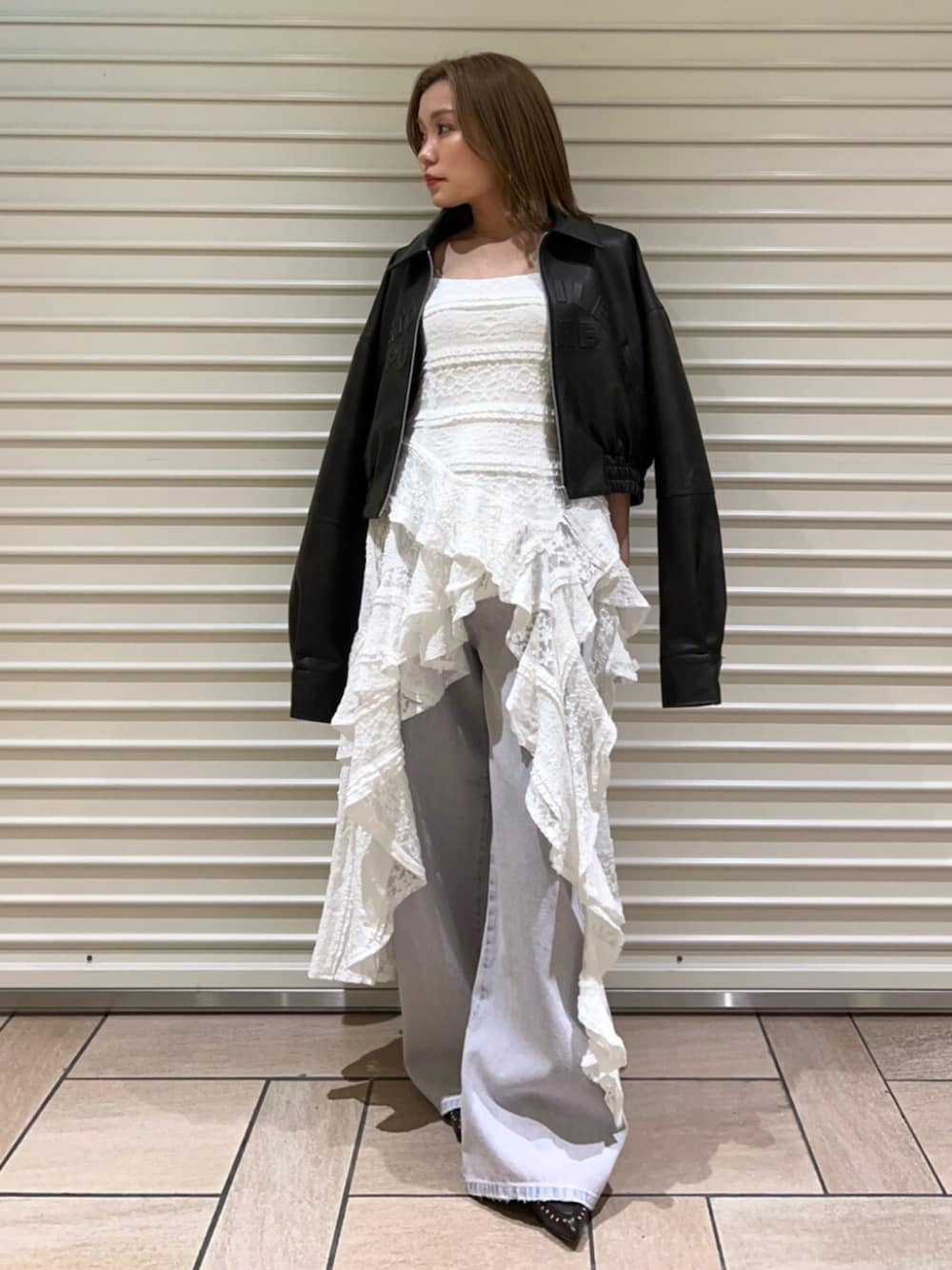 【one-piece】1枚で着映えするレースワンピ!ボトムはデニムやスウェットがおすすめ◎スタイリング次第でロングシーズン着まわせます♡ 【pants】履きやすさNo. 1デニム♡柔らかく薄手なので夏にもおすすめ!ピンクは春っぽコーデにおすすめのイチオシカラーです 🎀 【outer】ヴィンテージっぽいムラ感が可愛いレザージャケット♡ショート丈で低身長さんもスタイルUPできるのでおすすめ!!