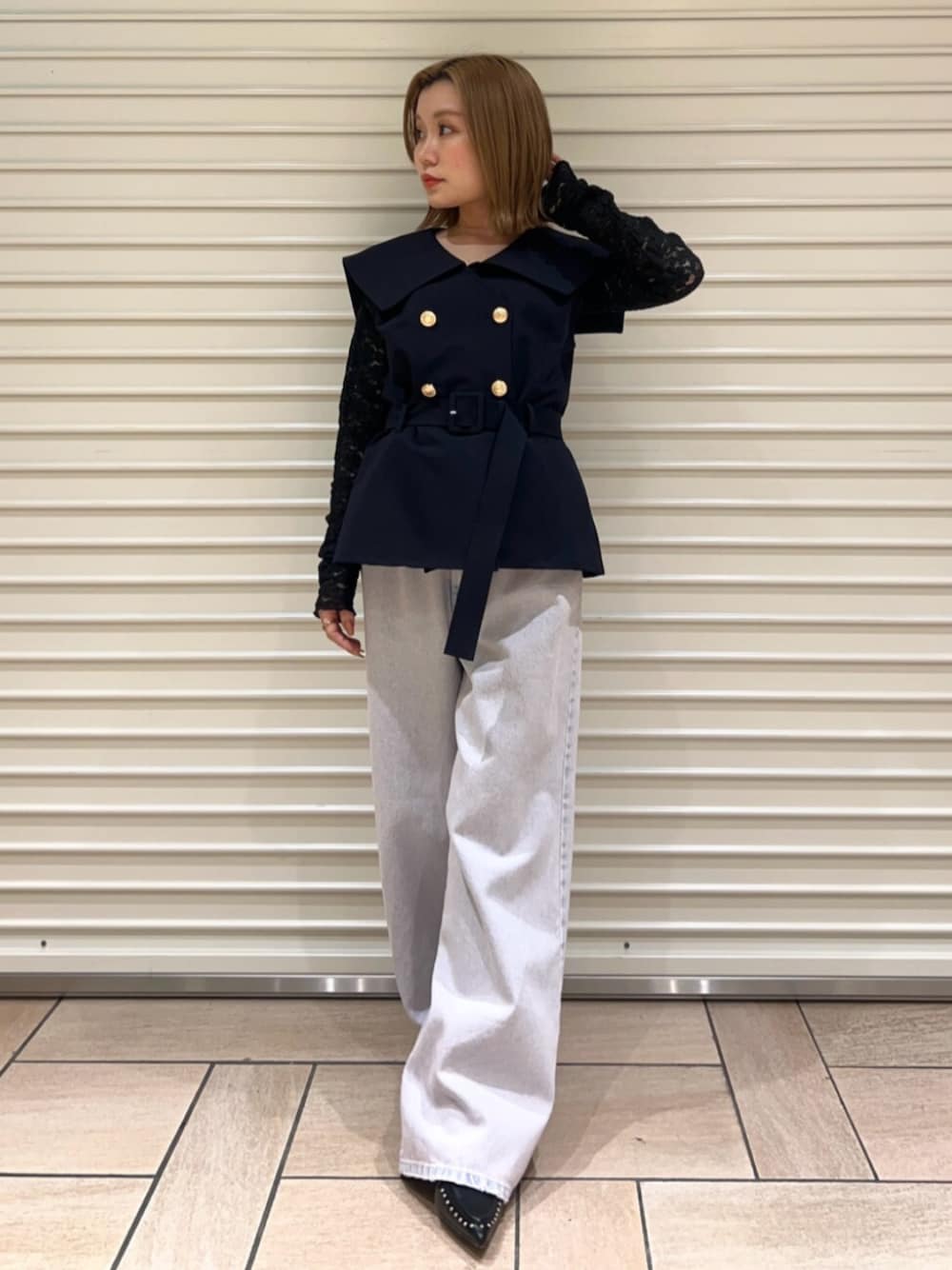 【tops】トレンドのレーストップス♡ヘルシーな背中の肌見せが可愛いです!パット付きなので1枚で安心◎ 【jacket】インナー次第でオールシーズン使えるジレは後ろのプリーツとセーラーカラーがPoint◎ウエストマークもできるのでコーデにメリハリ付けやすいです! 【pants】履きやすさNo. 1デニム♡柔らかく薄手なので夏にもおすすめ!ピンクは春っぽコーデにおすすめのイチオシカラーです 🎀 【shoes】オトナっぽコーデにおすすめのミュール!ソックスと組み合わせるのも可愛いです♡