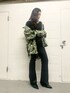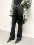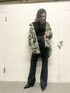 EMODAオリジナル柄のオーバーシャツは袖のゆるっと感が可愛い!コットンで作られているのでキャミソールを中に着ても肌触りがいいです♪160センチの私でこのくらいお尻隠れるので細身のパンツと組み合わせるとスタイルアップになります◯サテンパンツはオーバーシャツや、ロングトップスと合わせるのがオススメです。低めのヒールと合わせても床につかないくらいの丈間です!
