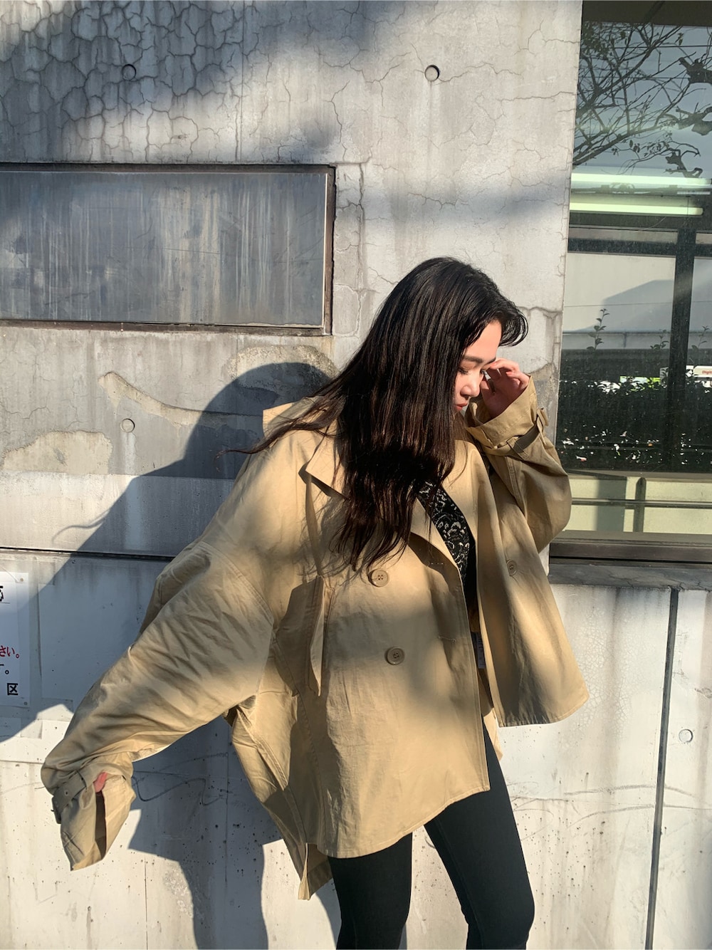 久道理沙(EMODA)のトレンチコート「バックロングワイドコート」を使ったコーディネート