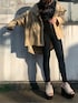 さらっと羽織れるオーバーサイズトレンチコートはコーデの主役になること間違いなし♡丈に前後差があるのでスタイルアップでバランスよく着用していただけます⭐︎軽量で羽織りやすいのもポイントです!ブラックのハイウエストデニム合わせで重たくなりすぎないようVネックのトップスと合わせてモードに仕上げてみました!こちらのニットは前後でVネックとUネックと使っていただけます!アウターとのバランスをとるために厚底でスタイルアップに仕上げました♡