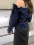 お花見や春のお出かけなどに着て頂けるこのトップスは今季大活躍間違いなし⭐︎デニム素材ですがオフショルになっていることで鎖骨が見え女性らしさがでてカジュアルすぎないところがポイントです◯また、ストラップがついているオフショルになるので落ちたり上がりすぎたりの心配もありません!二の腕部分には絞りが付いていることでギャザーになり華奢に見せてくれます!インスタイルもアウトスタイルもできる丈感ですが私はウエスト周りを綺麗に見せたいのでベルトをつけてみました♪着用しているスカートは膝辺りまで裏地が入っていて、膝下から透けているデザインなので足がスッキリ見えます◯