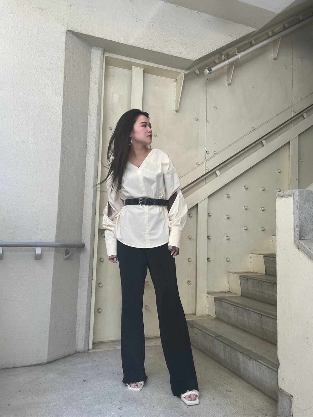 久道理沙(EMODA)のシャツ/ブラウス「スリーブレイヤートップ」を使ったコーディネート