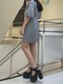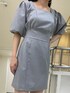 〔トレンドのパフスリーブが主役のコーデ〕 -one-piece- 肩の部分がパフになっているワンピースは着用するだけでこなれ感UP★ウエストの切り替え位置も高いので腰回りが細見えし、脚長効果抜群!私はなで肩ですが肩周りのデザインのおかげで全体がバランス良く見えます!スクエアネックで首周りすっきり見えるので食事でマスクを外す際も小顔効果間違いなし♡160センチの私で膝上12センチほどですがEMODAのワンピースの中では少し長めに感じたので短いワンピースに抵抗ある方でも挑戦しやすいと思います!