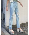 久道理沙(EMODA)のサンダル「ステッチバンドサンダル」を使ったコーディネート
