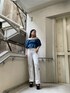 〔女性らしさを忘れないデニムコーデ〕 -tops- デコルテ部分を綺麗に見せてくれるトップスは気になる二の腕部分をナチュラルにカバーしてくれます。合わせるお洋服によってリボン部分が可愛すぎてしまう場合は、袖の中にリボンを入れ込むのもおすすめです★1枚で着用しても可愛いですがサロペットやオールインワンなどのインナーにも着用できます! -denim- フリンジが付いているところがポイントのデニムは、フリンジ部分が内側に付いているため、視覚効果で足のラインが細く見える効果があります。明るい色で膨張が気になる方でも細見えが叶うデニムになっているのでとてもオススメです♪丈間は160センチの私でスニーカー合わせで床につかないほどの丈間になっています! -shoes- より足を長く見せるために厚底と合わせてみました★冬などはブーツ合わせでもおしゃれに着ていただけます!
