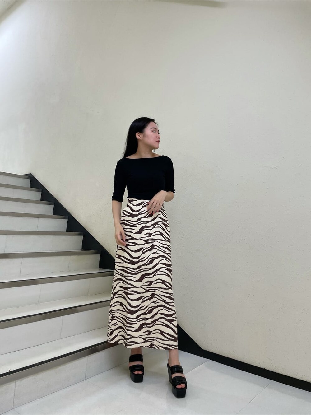 〔柄を取り入れた大人コーデ〕 -tops-パッドが付いているため下着が浮き出ずに気にせず着用できます!二の腕が隠れる丈感でも薄めの生地なので暑さを感じにくいです!私は猫背が気になるのですが鎖骨周りがスッキリ見えるので首周りも重たくならずに済みます♪ -skirt-存在感のある柄は綺麗めコーデにも大活躍!ハイウエストになっているので存在感がまし、シンプルなトップスと合わせてもオシャレに見えること間違いなし★もちろんビッグTシャツなどと合わせてラフに着用するのも可愛いです! -shoes- 綺麗め大人コーデにしたかったので合わせやすいこちらの靴を選びました!厚底ですが甲のデザインが足首を華奢見せしてくれます!