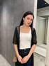 〔デニムの太もも細見えコーデ〕 -tops-カップ付きインナーはショルダー部分が太めなので下着の上から着用しても下着の紐が見えない為安心して着用できます♪160センチでおへそが半分隠れる丈感になっております。 -shirt-透け感が夏らしさを演出してくれるシャツは肘あたりまで隠れるので中にキャミソールやタンクなどを合わせるのがおすすめです◎ボトムスを履いた時にロング丈シャツが脚を綺麗に見せてくれる所がポイントです! -denim-履き心地が柔らかくて気持ちいいこのデニムは薄めのハイライトが入っていることで鏡で見た時に足が綺麗に見えることはもちろん、歩いている時でも立体的に見えるので綺麗に見えること間違いなし!