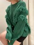 [トレンドカラーのオシャレコーデ] -tops-フリンジデザインがコーデのポイント★オーバーサイズで160センチの私でお尻が隠れるほどの丈感になっています!シンプルなボトム合わせでも、柄ボトムでも相性抜群です。モノトーンが多い私にとって挑戦しやすいグリーンカラーになっております! -skirt-ツイード柄が秋冬感を出してくれるのが可愛い◯ハイウエストのスカートをオーバーサイズニットのボトムとして合わせてみました!インナーはパンツになってるので安心感があります!モール系が入っていて柔らかいので動きやすい所もポイントです! -shoes- スカートコーデで脚長に見せたかったのでEMODAで大人気の厚底ローファーと組み合わせてみました⭐︎
