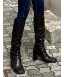 久道理沙(EMODA)のブーツ「スクエアポイントミドルブーツ」を使ったコーディネート