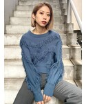[差し色が可愛いデザインニットコーデ] -tops-フリンジがコーデのポイントになり、差し色ももちろん、1枚での着用も可愛いです◎私はデニムと合わせていますが、キャミワンピのインナーやスカートなどと合わせても可愛いデザインニットです♡ -outer-トップスの色、柄をポイントにしつつモードに見せるためにブラックのアウターを合わせました!オーバーサイズで骨盤周りが隠れる為重心が低い私でもスタイルアップに着用できます! -denim-見た目で硬そうに見えるかもしれませんがストレッチ性があるのに着圧があるデニムです!腰回りのポケットデザインがスッキリ見せてくれるポイントです♡ -shoes-重心を上に上げてスタイルアップに見せるために厚底で合わせました◎
