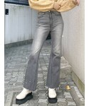 [キレイめカジュアルのスタイルアップコーデ]-tops-フロント部分がクロスになっているためウエスト周りがほっそり見え、デザイン位置が上めにあるからこそ目線が上にあがりスタイルアップに繋がります★ -denim-裾の切りっぱなしデザインが可愛いフレアデニムは160cmの私でおへそが隠れる丈なので流行りのショートトップスとの相性も抜群です◎ボトムスがブラックになりがちな方など挑戦しやすいカラーになっております。 -shoes-履いてみたら靴底がクッションのように柔らかめになっているので足の裏疲れがしにくいです!沢山歩くショッピングにも履きやすいと思いこのシューズを合わせました!