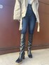 [春の大人カジュアルコーデ] -tops-スクエアネックでデコルテ周りをスッキリ見せてくれるトップスを合わせました!トレンチコートとデニムをポイントにしているのでインナーはシンプルなもので合わせています★ -outer-160センチの私でお尻が半分隠れる丈感になっているので高身長の方はショート風、小柄な方はお尻が隠れる丈感で着用頂けます♪ボトムを選ばない丈感なので着回し抜群です! -pants-4つボタンのハイウエストデニムは硬めの生地感ですがストレッチ性があるのでアクティブに行動できます◎おへそ上ほどのハイウエストになっています! -shoes-細めのスクエアになっているロングブーツで大人カジュアルにデニムと合わせてみました!24センチでLサイズの着用です。