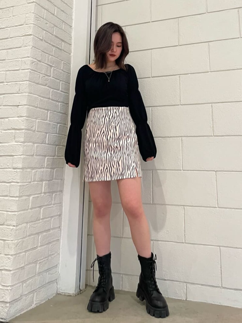 [ショッピングデートコーデ♡] -tops-2wayで着用できるトップスは160センチでおへそにかかる丈になっています。胸元のギャザーが目線を上に上げてくれるので更にスタイルアップ効果が望めます◎ -skirt-柄のハイウエストスカートはホワイトとブラウンの色合いなのであまり強過ぎないイメージで着用頂けます。両サイドにスリットが入っているので太もも周りがスッキリ見えするのが嬉しいポイントです! -shoes-インソールが入っている厚底ブーツを合わせました!軽量で歩きやすい為、お花見やショッピングなど長時間歩く日にもオススメです♡