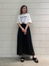 [ カジュアル風にしたワンピコーデ] -onepiece-スリットが入っているロングワンピースは夏場のブラックでもスリットが入っていることで重たく見えないのがポイントです!袖が肘上になり、二の腕周りもゆるっとカバーされます。160cmでくるぶし上の丈でした。 -tops-オーバーサイズのTシャツは160cmでお尻がすっぽり隠れる丈です。写真のような内側に丸めてショート丈風にするのもオススメです!-shoes-エナメル素材のサンダルはスクエアの形なのでキレイめ、カジュアルなど様々な系統で履いていただけます。靴底がクッション性がある為足が疲れにくいのも特徴です★