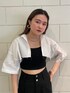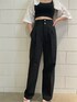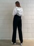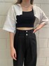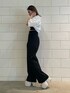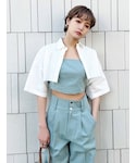 [夏のモードなスタイルアップコーデ] -tops-・パッド付きで下着なしで着用可・おへそ上5センチ程の丈・スクエアネックなのでデコルテが綺麗に見える -shirt-・切りっぱなしでシンプルながらもカジュアルに着用・袖口が広いので夏場でも着用しやすい・ショート丈が腰の位置を高くしてスタイルアップに -pants-・2つボタンがウエストマークですっきり・160センチMサイズで低めのヒールを履いてちょうどいい丈・足のラインが出にくい上にウエストがキュッと見える -shoes-・24センチでLサイズの着用・傾斜が緩いので長時間歩きやすい・甲の帯の部分が細めなので足が長く見える