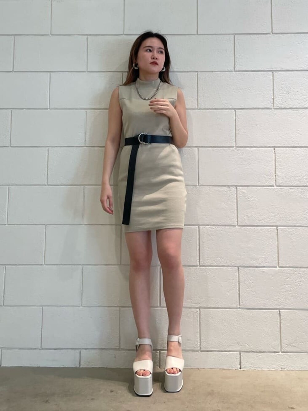 [ カジュアルにミニ丈ワンピコーデ] -onepiece-・リブ素材で着脱しやすい・ボディラインを拾いずらいので下着も気になりにくい・シャツなどを羽織ると春秋でも着回ししやすい -shoes-・24センチでLサイズの着用・傾斜が緩いので長時間歩きやすい・甲の帯の部分が細いので甲が長く見え、足も長く見える -belt-・穴が空いてないので薄めや厚めなど選ばずに着用可能・ウエストマークすることによって腰の位置が高く見え脚長効果に