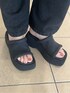久道理沙(EMODA)のサンダル「バルキーウェッジサンダル」を使ったコーディネート