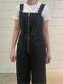 [体型カバーのサロペットコーデ] -tops-・シンプルなロゴのTシャツなのでデイリー使いできる・160センチで丈がおへそにかかる程・ピタッとしすぎないシルエット -salopette-・全体的にゆるっとしたシルエットでウエスト周りもピタッとしにくい・160センチでSサイズ着用・アジャスターで調節ができる為伸ばして古着風にも◎ -shoes-・傾斜がほぼない為長時間歩きやすい・シンプルなデザインでボトムを合わせやすい・厚底までは履けないけど少し高めで歩きやすいのを履きたい方にオススメ