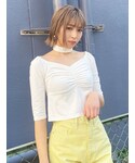 久道理沙(EMODA)のTシャツ/カットソー「ギャザーポイントコンパクトトップ」を使ったコーディネート