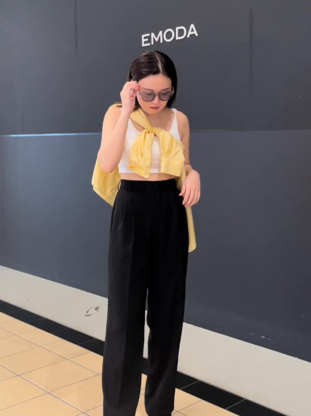 久道理沙(EMODA)のタンクトップ「スクエアクロップタンクトップ」を使ったコーディネート