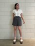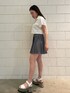 [細く見えるシルエットのミニ丈コーデ] -tops-・二の腕が細く見えるシルエット・160センチでおへそ上の丈感・ゆるっとしたシルエットでショート丈なのでボトムを合わせやすい -skirt-・太ももが細く見えるシルエット・腰の位置が高く見える・インナーショーツ付きで安心 -shoes-・24センチでMサイズの着用・傾斜が緩く長時間歩きやすい・軽量