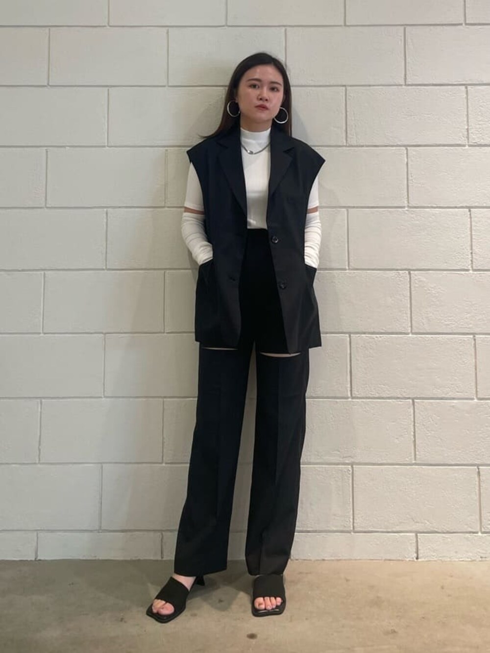 久道理沙(EMODA)のベスト「オーバーシェイプベスト」を使ったコーディネート