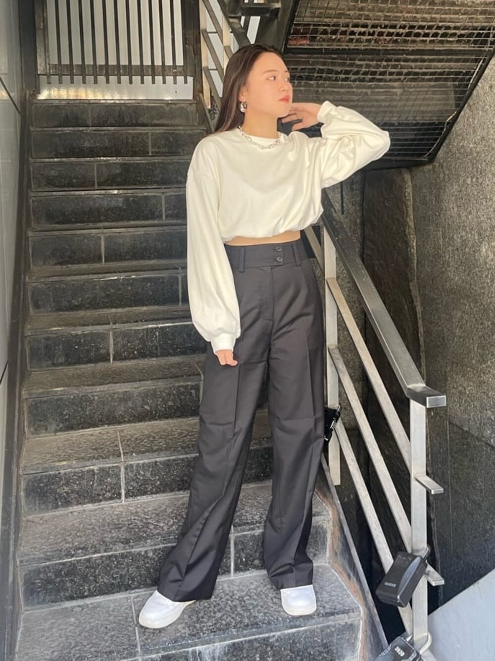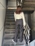 久道理沙(EMODA)のスラックス「ハイウエストワイドスラックスパンツ」を使ったコーディネート