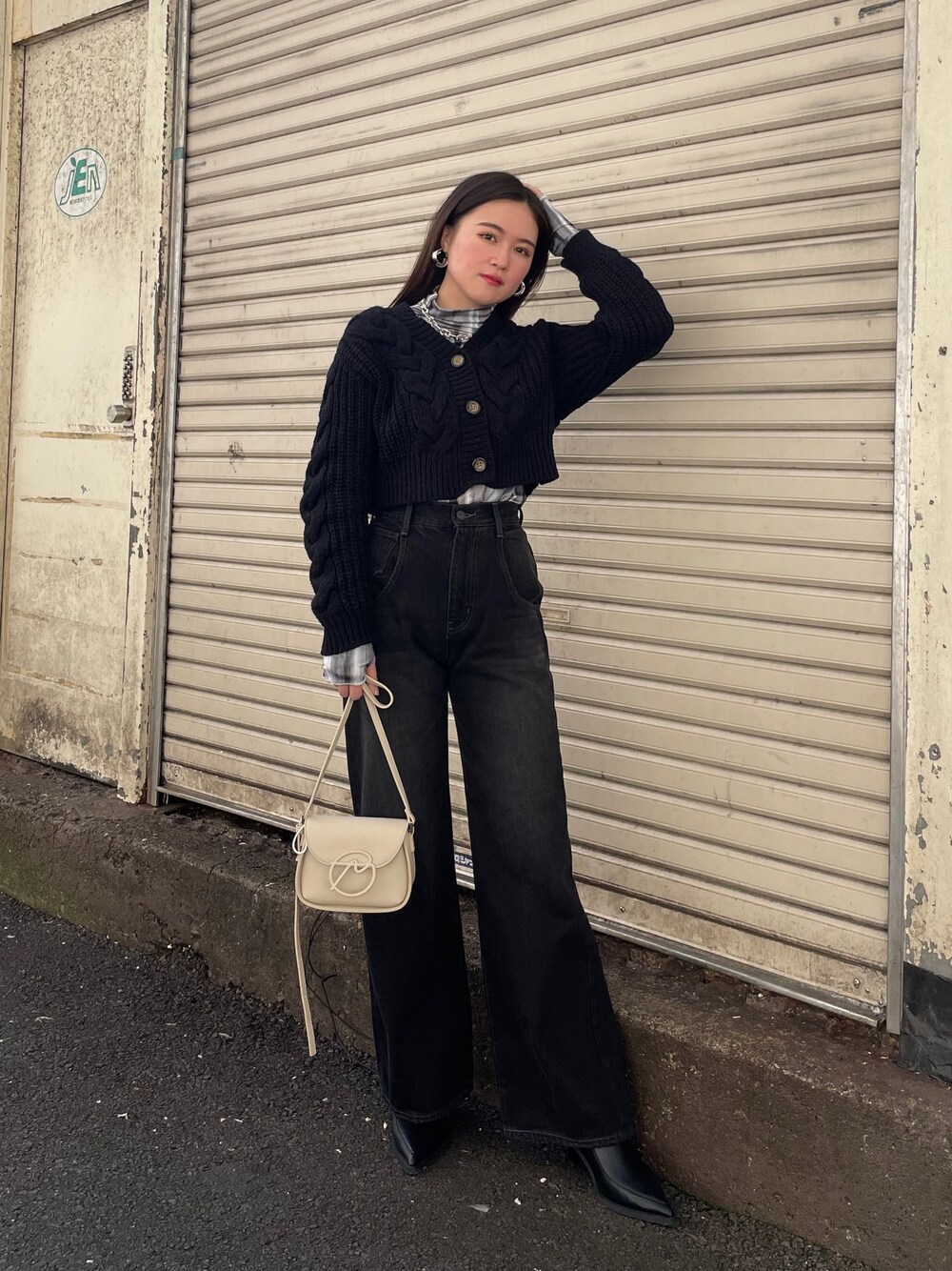 久道理沙(EMODA)のカーディガン/ボレロ「ショートケーブルニットカーディガン」を使ったコーディネート