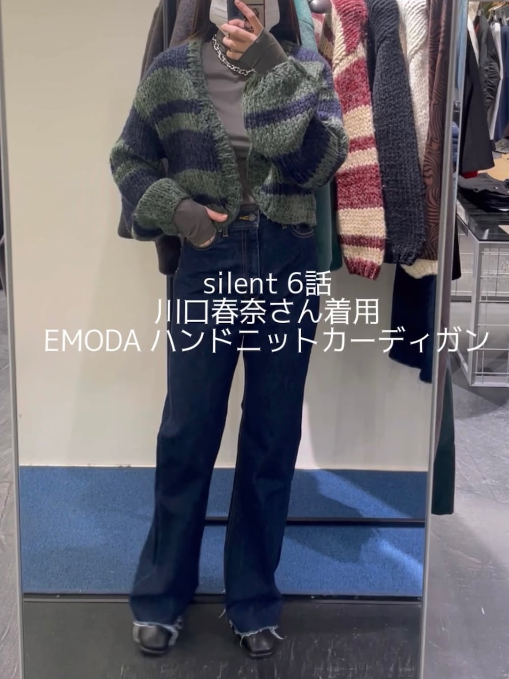 【silent着用カーディガンコーデ】 -tops-・伸縮性あり・サラッとした肌触り・くびれ下の丈感 -cardigan-・くびれ丈の長さ・袖周りがボリュームあるのでインナーがシンプルでも映える・ショート丈なのでボトムを合わせやすい -denim-・お尻のポケット位置が高いからスタイルアップに・裾が長めの為ブーツ合わせで大人っぽい着用がオススメ・25インチでブーツ履いてちょうどいい丈感 -shoes-・牛革・柔らかく歩きやすい・中敷下に3ミリのクッションある為歩きやすい