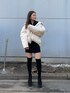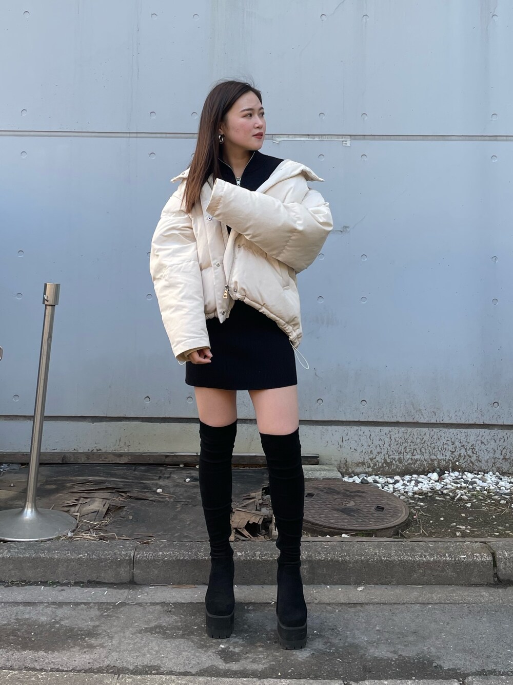 【ダウンのミニ丈コーデ】 -one-piece-・伸縮性あり・ジップは開け閉め出来るのでハイネックとVネック風で着用可能・リブ素材なので下着ラインが出にくい -outer-・袖の取り外しが可能・ダウン、フェザーが50%ずつ入っている為インナーが薄着でも暖かい・袖がリブ付き・フード付き -shoes-・24センチでLサイズでつま先にゆとりがある大きさ・着圧で細見え・丈感3センチほど中に織り込んで調節してます