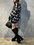 【チェックを入れたモードコーデ】 -shirt-・オーバーサイズで肩を落として着るのがオススメ・160でお尻がすっぽり隠れる丈感・モードなチェック柄なので子供っぽくなりにくい -skirt-・160cmでおしりすっぽり隠れる丈感・腕周りにゆとりがあるので厚めのインナーも着やすい・細身のパンツ合わせで太もも周りがスッキリ見える -shoes-・24センチでLサイズ着用・Mでも入りますが甲高さんはLがオススメ・傾斜が緩いので長時間歩きやすい