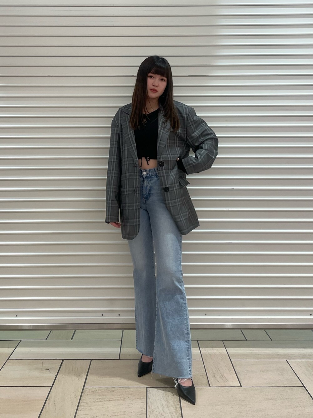 【春カラーデニムのジャケットコーデ】 -tops-・伸縮性あり・1枚でオシャレ見えするニット・160センチでおへそ上の丈感 -jacket-・オーバーサイズな為細身のものやミニを合わせた時に細見えする・160でおしりすっぽり隠れる丈感・厚すぎず薄すぎない素材 -denim-・160センチでくるぶしにかかる丈感・少々伸縮性あり・おへそが見えるか見えないかの丈感 -shoes-・24センチでLサイズの着用・ストラップ付きの為靴下との組み合わせも可能・デニムなどの合わせもオススメ
