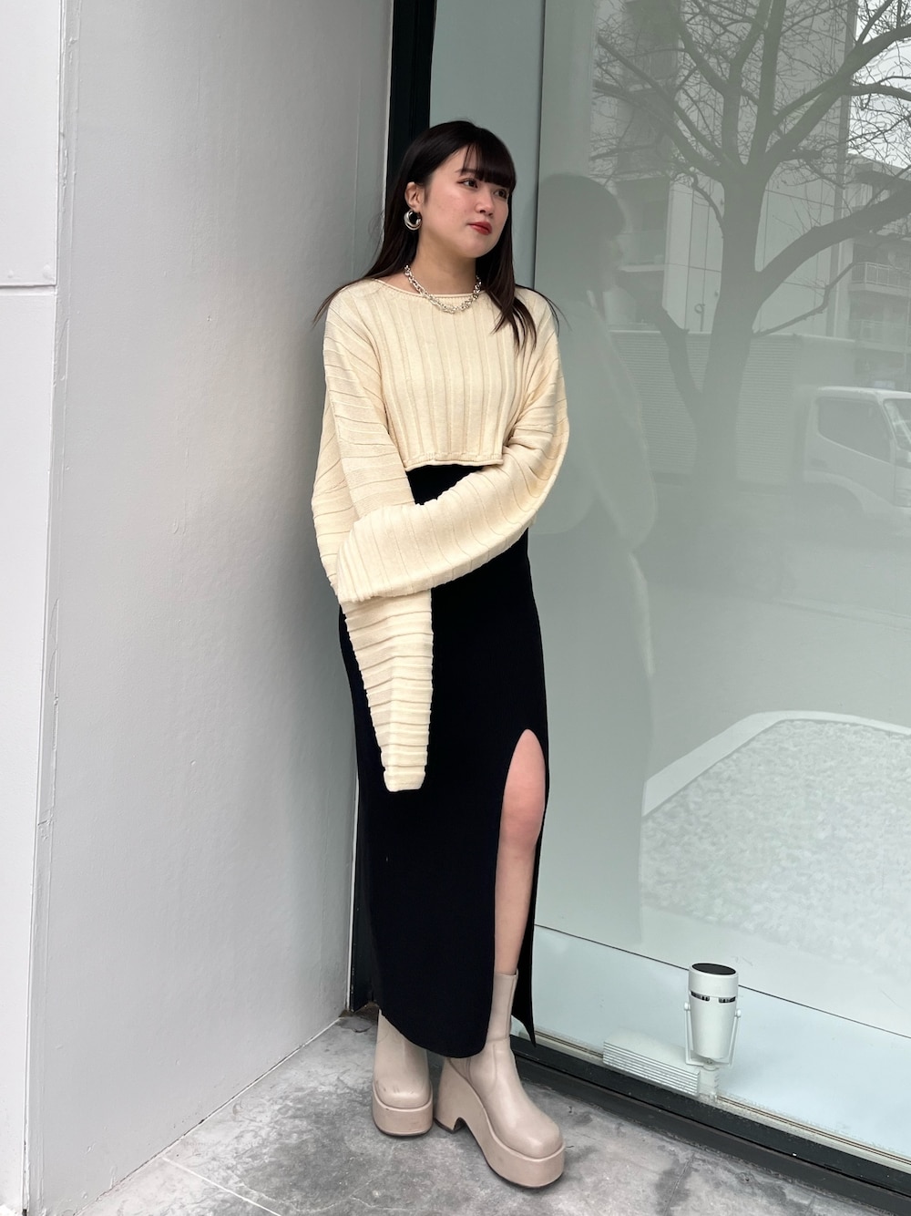 久道理沙(EMODA)のニット/セーター「ルーズネックニット」を使ったコーディネート