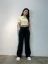 【動きやすいおしゃれコーデ】 -tops-・ラインが出すぎないコンパクトトップス・おへそ上5cm程の丈感・ベロア風の素材 -pants-・太ももラインが出にくい・160cmでスニーカーで裾がつかない丈感・ウエストがゴム