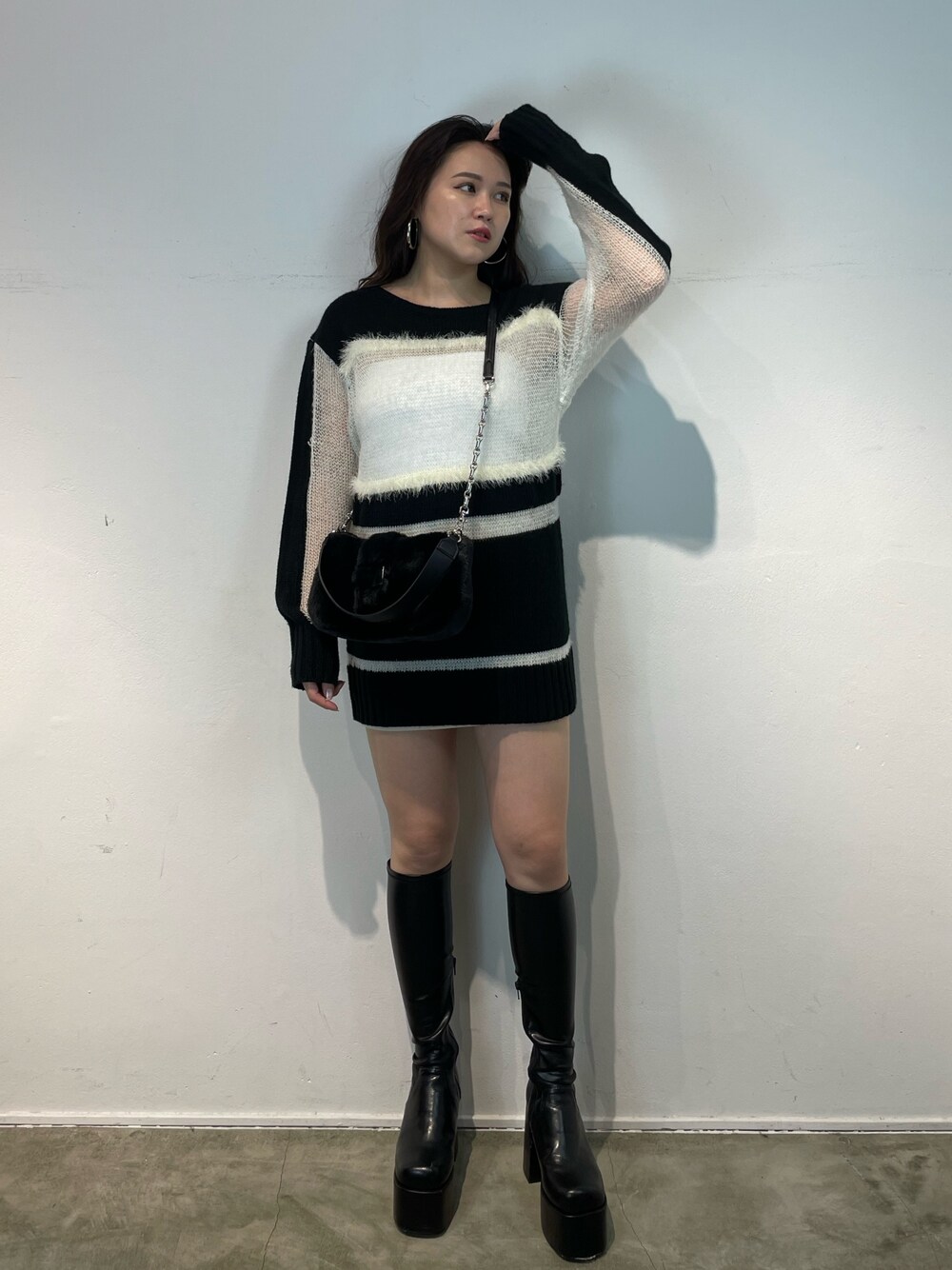 【モードな女子コーデ】 -tops-・胸周り部分が透け感のある素材・伸縮性あり・おしりが隠れる丈感 -shoes-・レザー素材・伸縮性あり・大きめなので24cmはMではいりますが甲高さんはLがオススメです