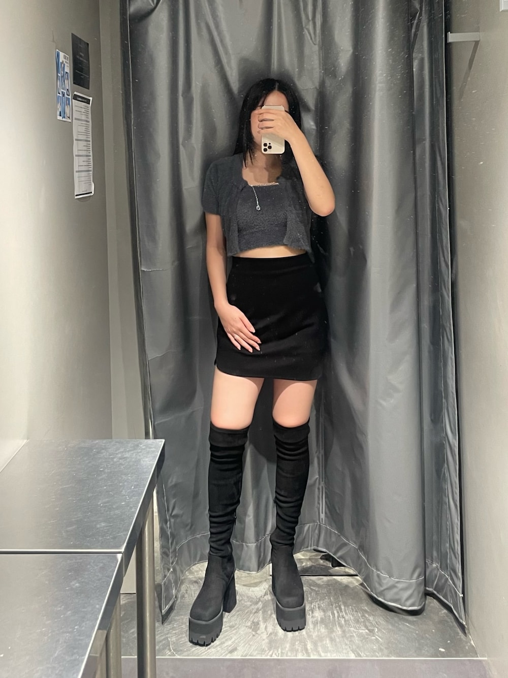 【女性らしいニーハイコーデ】 -tops-・伸縮性あり・別々での着用も可能・おへそ上5cm程の丈感 -skirt-・伸縮性あり・インナーパンツ付き・おへそ上の丈感 -shoes-・伸縮性あり・織り込んで調節可能・24cmでLサイズ