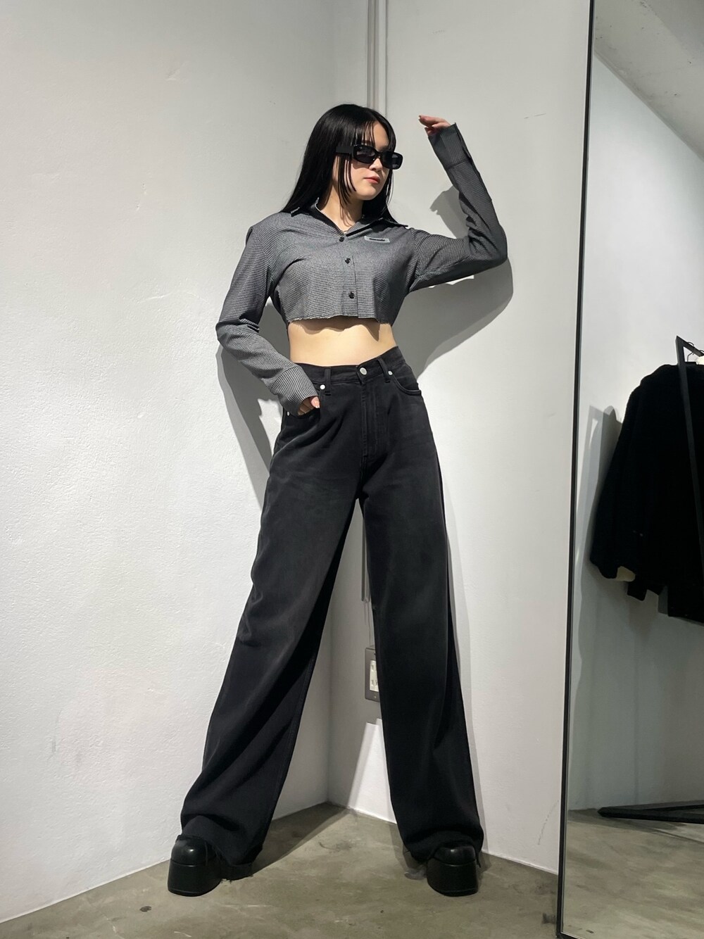 久道理沙(EMODA)のシャツ/ブラウス「カットオフクロップドシャツ」を使ったコーディネート