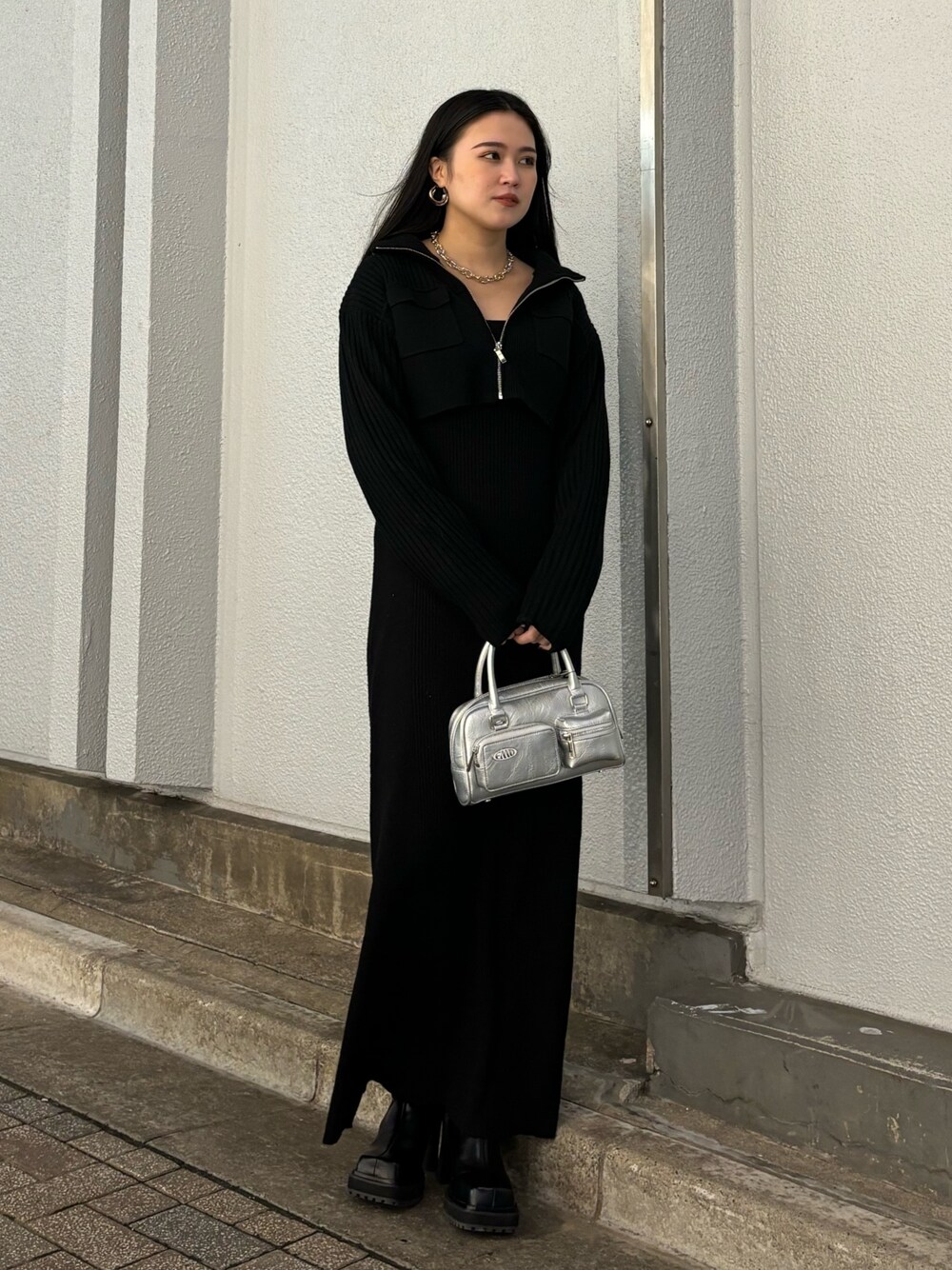 【2ピースワンピの大人コーデ】 -onepiece-伸縮性があり中は長袖のワンピース、上から羽織れるトップスが付いてます。別々での着用ができるので着回し抜群です! -shoes-傾斜が緩く歩きやすい。スクエアのデザインなので色んな系統で合わせやすく、24cmでLを履いてます!