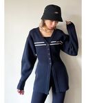 久道理沙(EMODA)のカーディガン/ボレロ「チューズラインロゴカーディガン【セットアップ着用可能】」を使ったコーディネート