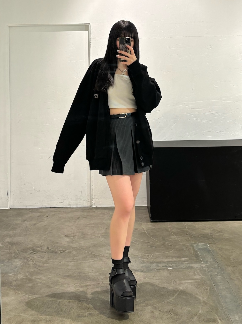 【ミニ丈のトレンドコーデ】 -cardigan-160cmでおしりがすっぽり隠れる丈感です。シンプルで使いやすいので着回しがしやすいのが嬉しいです。 -skirt-細めのベルトがセットで付いてます。インナーパンツが着いてるので安心して履いていただけます。 -shoes-高さはあるが傾斜が緩く歩きやすい。合皮なので馴染みます!